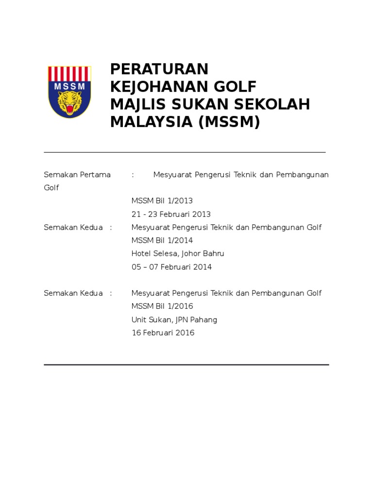 9 Peraturan Golf Mssm Updated 2016 Utk Kej Golf 2016 Pdf